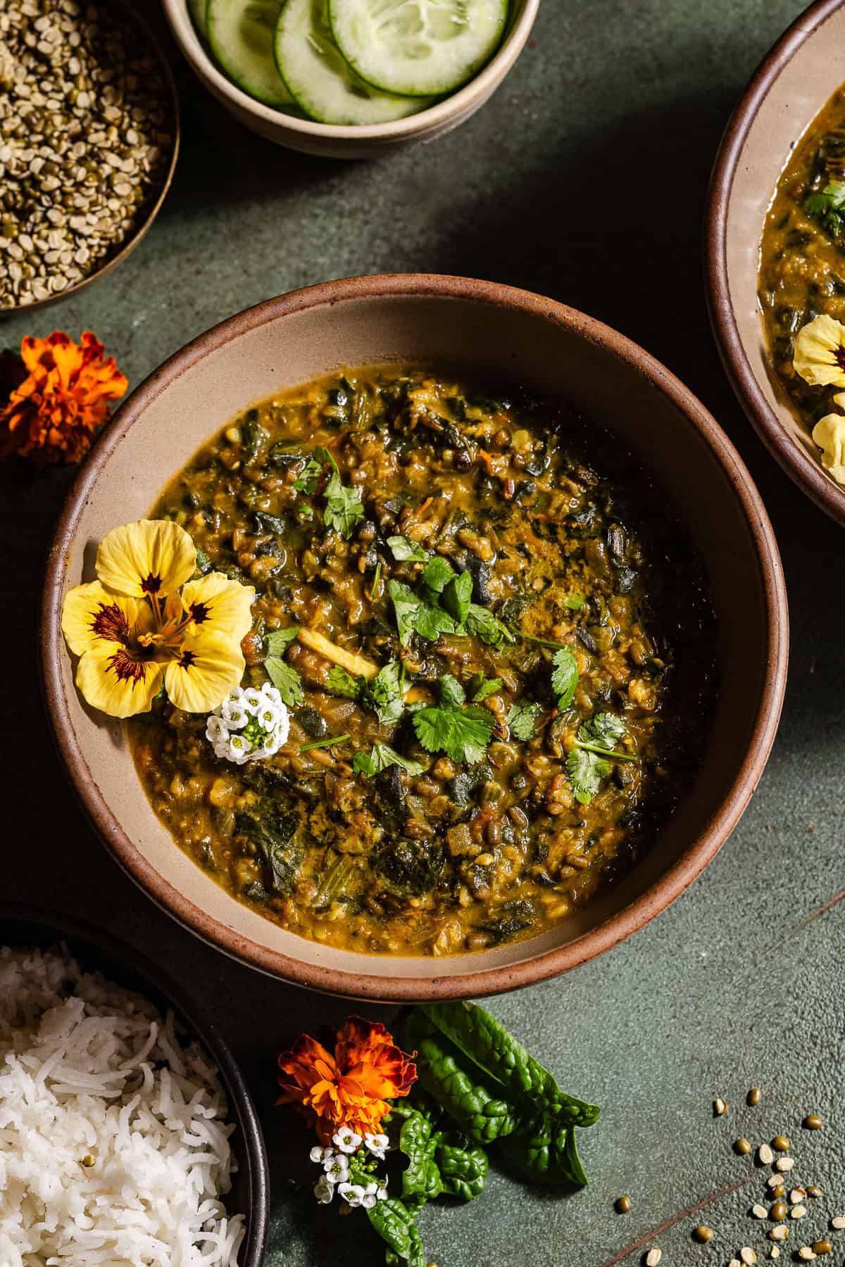 Unlike richer dals finished with cream or butter, dal palak stays light and fresh. The spinach adds color and nutrients, while tomatoes bring gentle acidity that balances the earthiness of the lentils. It's commonly made in North Indian homes as an everyday meal - especially when you want something healthy but still comforting during the wintertime.