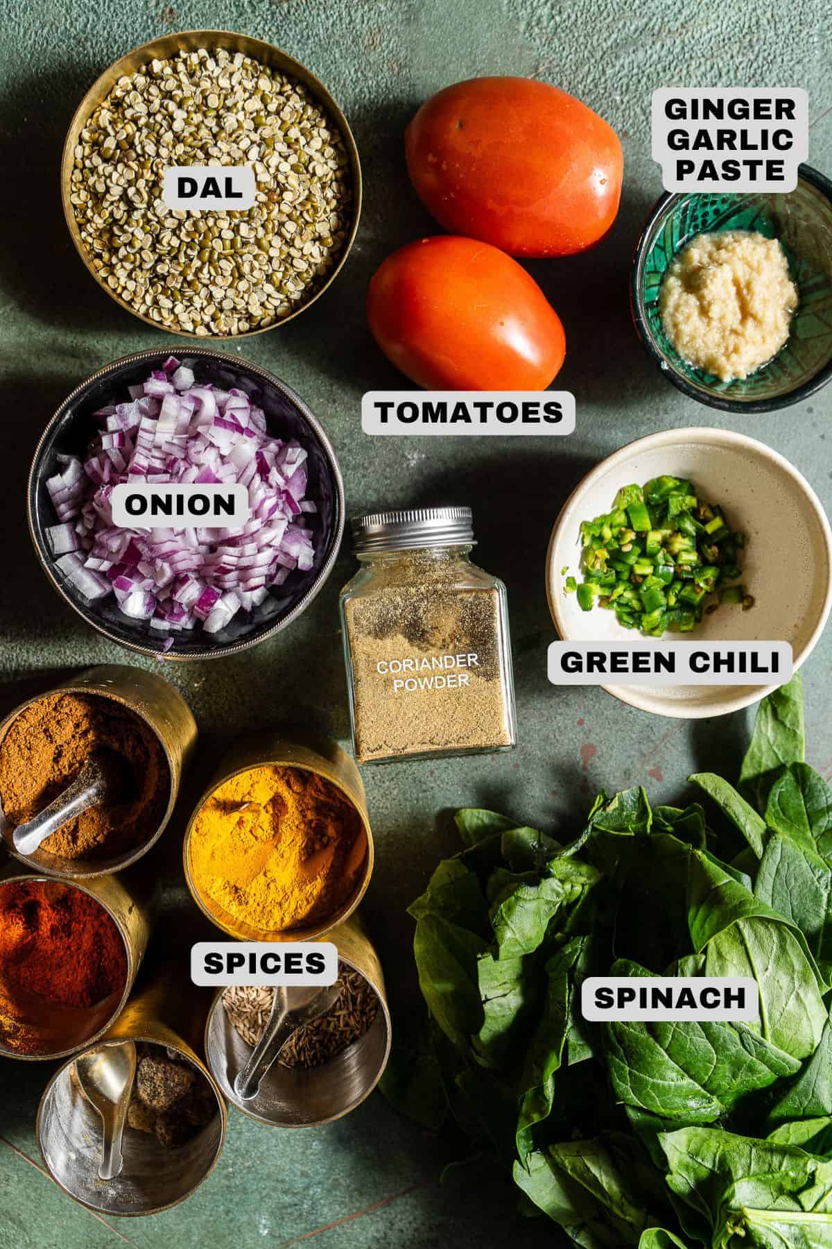 - Spinach - Fresh spinach gives this dal its signature green color. Baby spinach or mature spinach both work - just chop it roughly.